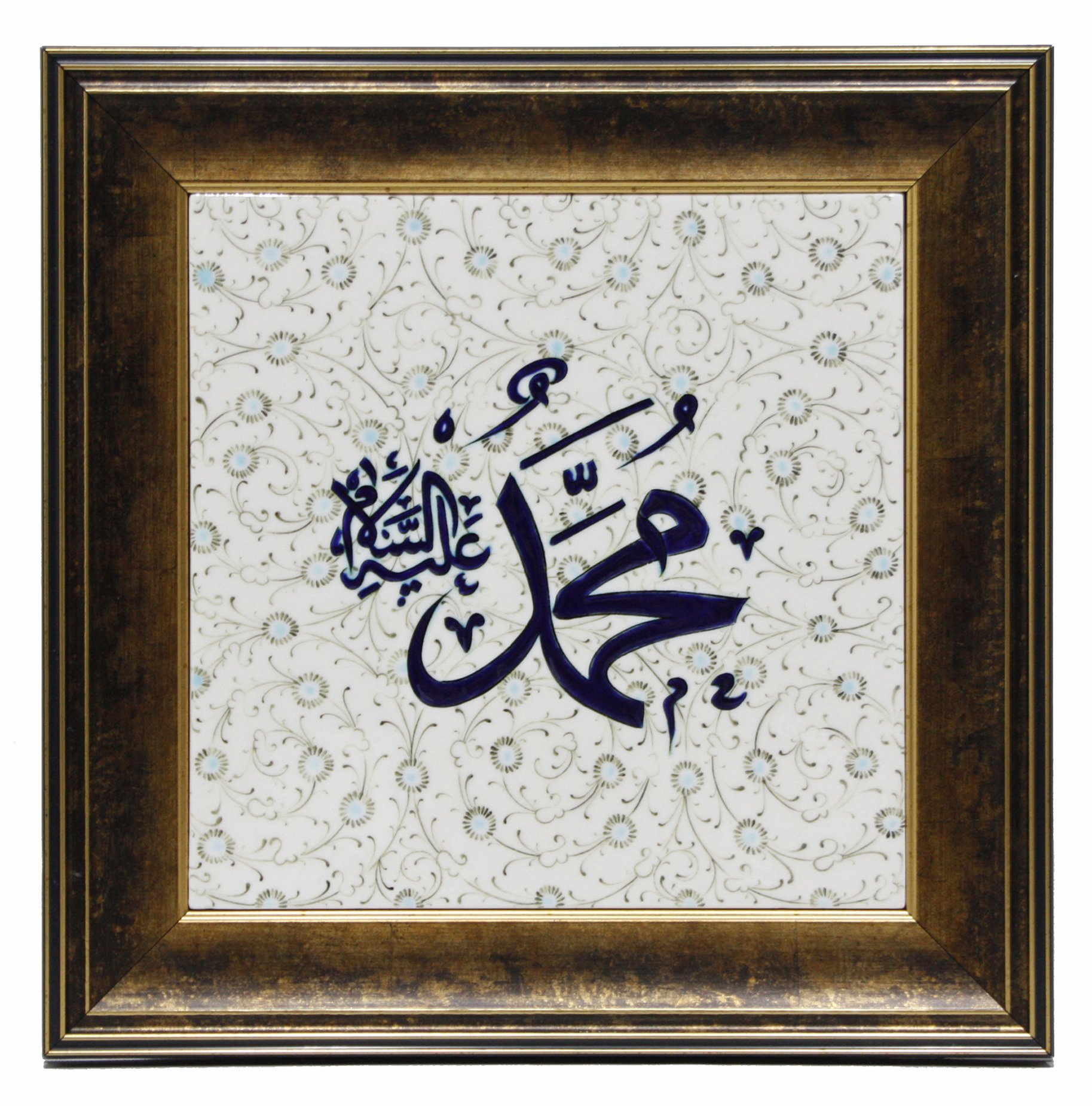 Otantik Çini Haliç Dekorlu Hz Muhammed SAV Yazısı Ahşap Çerçeve Çini Tablo *Ölçü :30x30 cm* ÜRÜNLERİMİZ ÖZEL ÜRETİM EL YAPIMIDIR