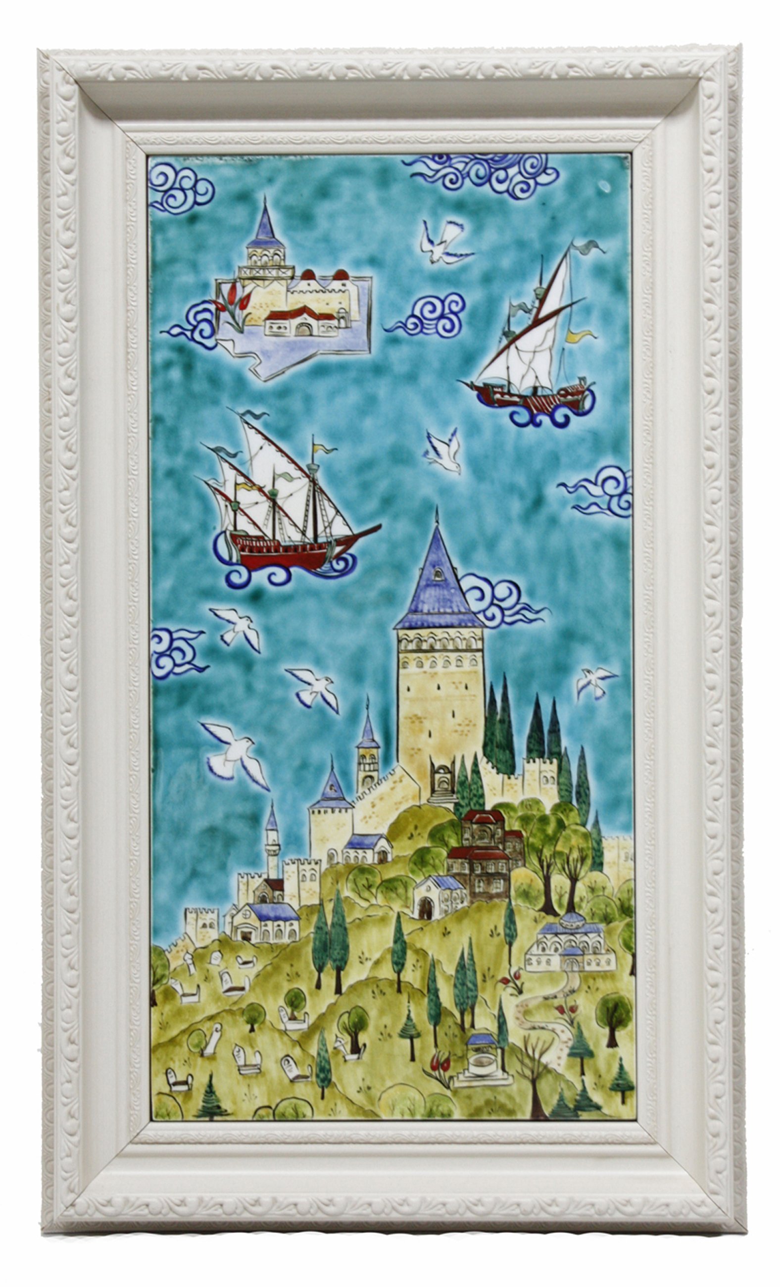 Otantik Çini İstanbul Galata Minyatürü Ahşap Çerçeve Çini Tablo *Ölçü : 30x50 cm* ÜRÜNLERİMİZ ÖZEL ÜRETİM EL YAPIMIDIR