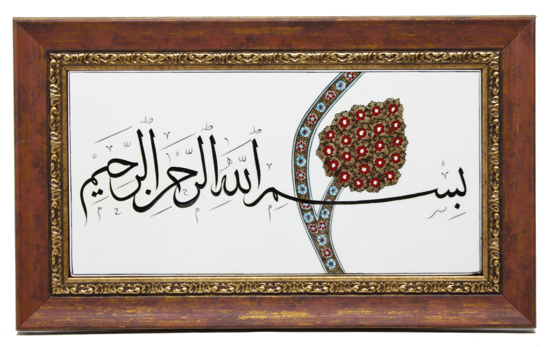 *Otantik Çini Nar Çiçekli Besmele-i Şerif Ahşap Çerçeve Çini Tablo* *Ölçü : 50x30 cm* ÜRÜNLERİMİZ ÖZEL ÜRETİM EL YAPIMIDIR